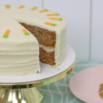 Store your cake in an airtight container like a cake caddy. If you’re transporting it I recommend putting it in the freezer for about an hour first so it’s firm for the drive.